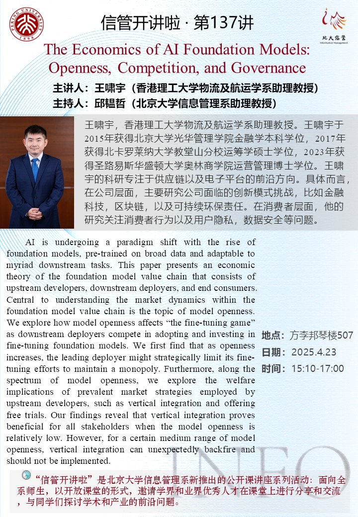 信管开讲啦·第137讲 | The Economics of Al Foundation Models:Openness, Competition, and Governance
