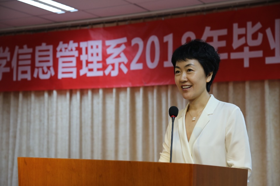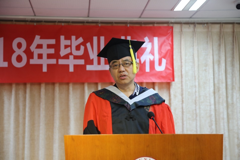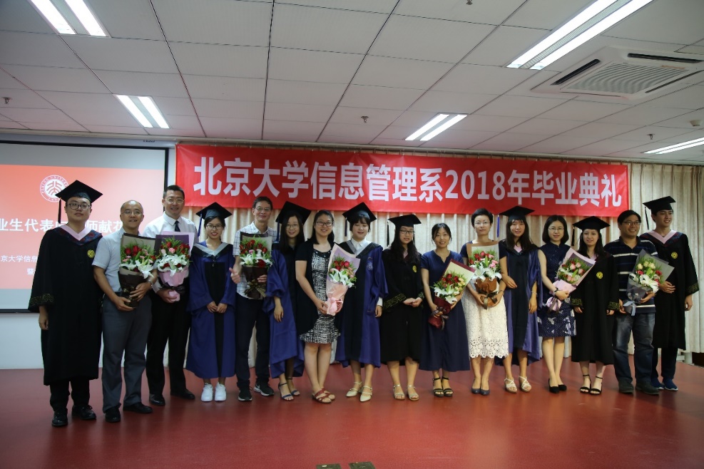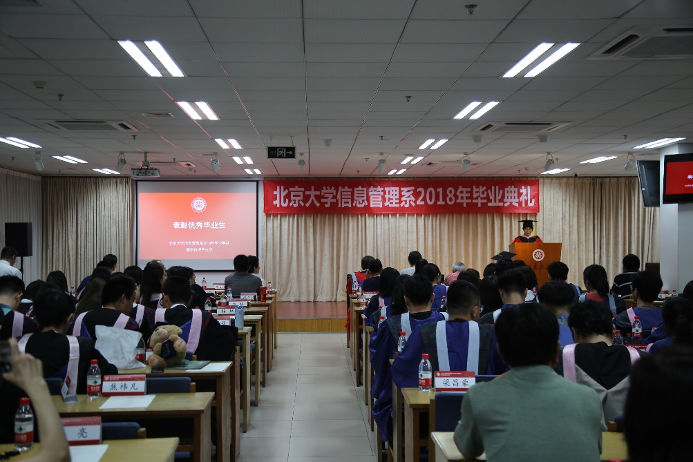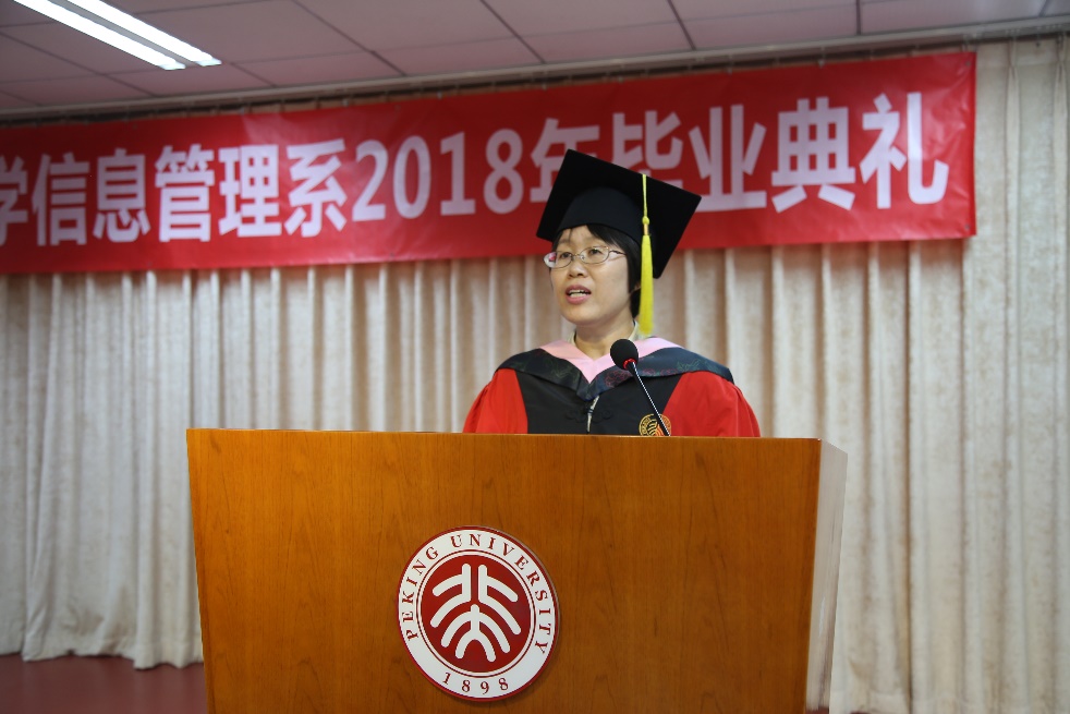 李广建在给毕业生的致辞中提到,2018届毕业生幸运地经历了北京大学120周年校庆与信息管理系70周年系庆,相信同学们今后不论身在何方,都不会忘记镌刻在心中的北大精神,不会忘记烙印在骨子里的信管情结。他强调,“信以通达,管则治世”这句口号,深刻寄托了我们专业的责任与使命。毕业离别之际,他向毕业生同学们提出三点建议:一是要积极融入社会,以开放的心态去面对每一个人、每一件事;二是保持学习的热情,保持独立思考的能力;三是要做一个具有使命感的人,把自己喜欢做的事情以及自己应该做的事尽可能地做到极致。他也特别嘱托同学们,要保持健康积极的身心状态,把生活过得更加平衡。