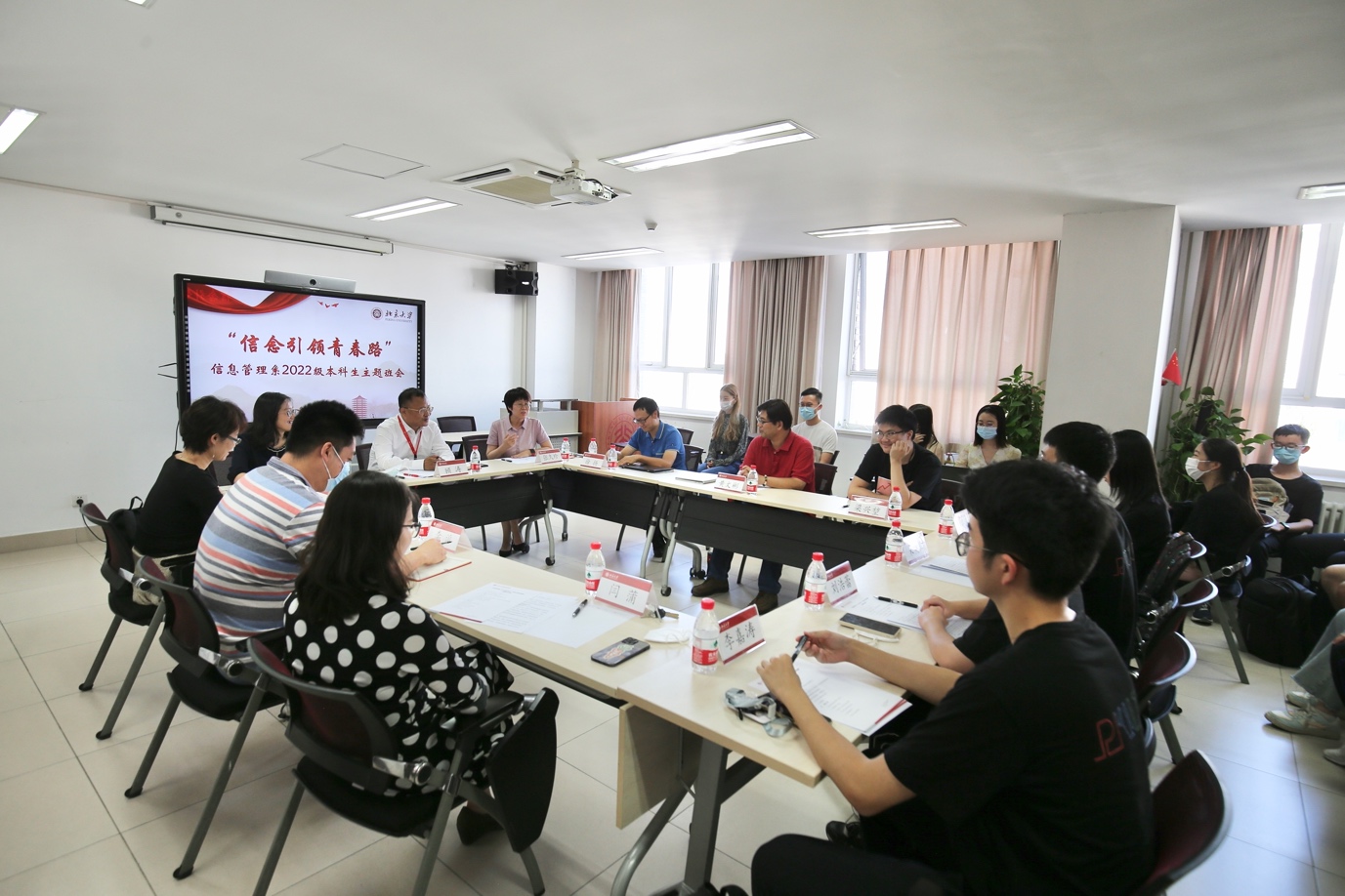 2022级本科生2班班主任闫蒲介绍了本年级新生的基本情况和信管结合院系特色组织的新生教育活动。信息管理系为来自10个不同的民族,27个省级行政区或直辖市的本科新生准备了丰富的新生教育活动,以思想引领为主线,开展了新生党课、先进事迹报告会等活动;以学术学科导学为重点,组织了培养方案说明会及新老生学习、科研、就业、生活等交流会活动;以建设信管家文化为依托,进行了新生宿舍走访和送月饼、中秋月饼DIY等活动;以疫情防控工作为屏障,严格落实学校的疫情防控规定,守护同学们的身心健康。
