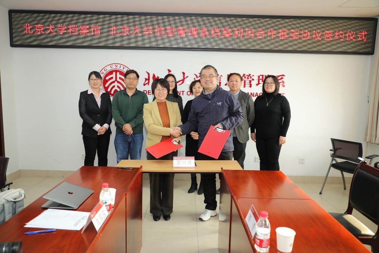 2023年2月23日下午,信息管理系与档案馆档案利用合作框架协议签约仪式在信息管理系会议室顺利举行。档案馆、校史馆馆长余浚、副馆长张向英、贾永刚、刘静等和信息管理系党委书记、系主任张久珍、党委副书记张妙妙、信息管理系教授王继民、副系主任张鹏翼、大数据教研室主任、系主任助理黄文彬、情报学教研室主任刘畅、图书馆研究馆员朱本军、系团委书记、综合办公室主任李派等参加了签约仪式。签约仪式由副书记张妙妙主持。