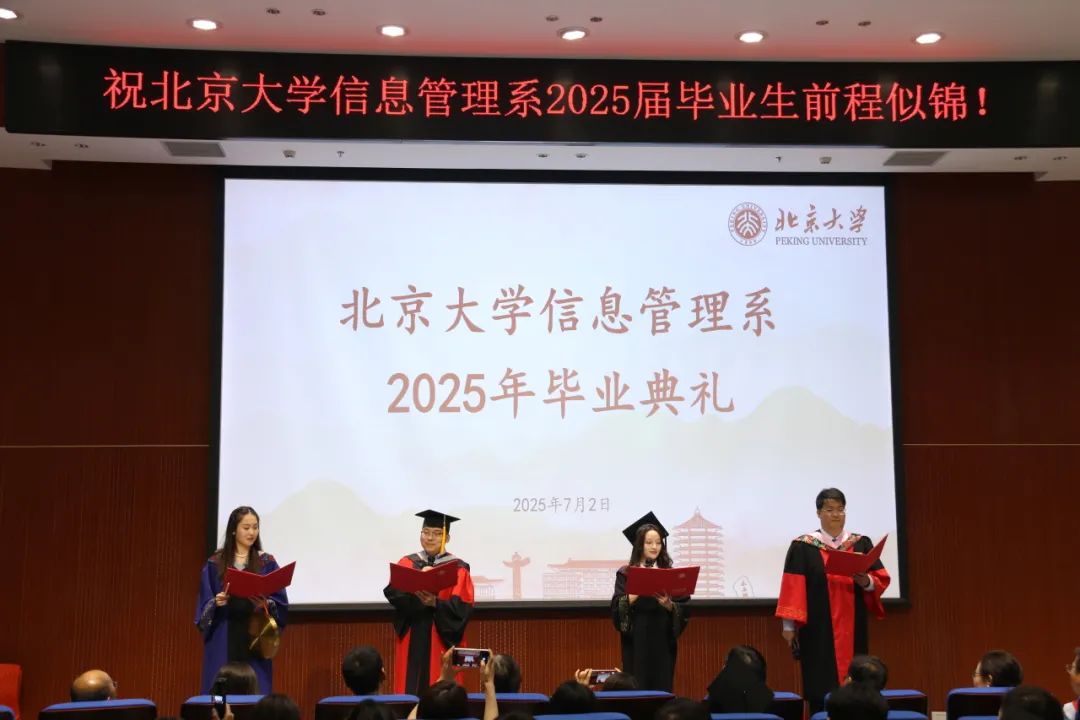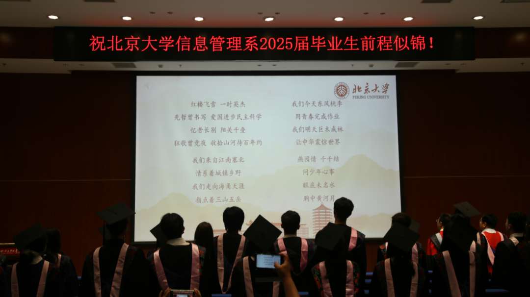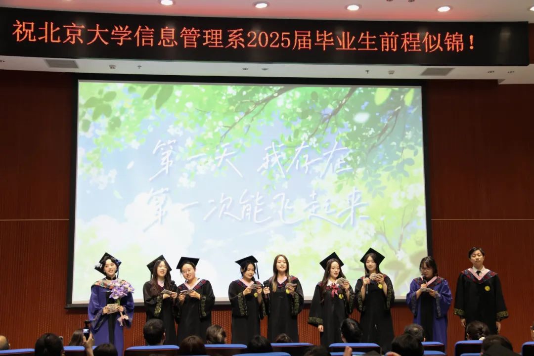 最后,全体师生合唱《燕园情》,2025年信息管理系毕业典礼暨学位授予仪式在悠扬的歌声中落下帷幕。此刻,青春的回忆被轻轻珍藏,彼此的祝福也随歌声传向远方。离别不是终点,而是新的启程。愿北大信管的毕业生们,带着“信以通达,管则治世”的印记,带着在燕园收获的勇气与温暖,解锁属于自己的星辰大海。