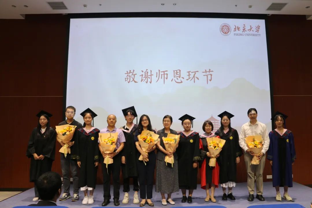 系党委书记李胜宣读表彰优秀毕业生的决定,授予陈丞、杜咏曦等16名同学“北京大学优秀毕业生”荣誉称号,授予李奎良、王雨辰等5名同学“北京市普通高等学校优秀毕业生”荣誉称号。李胜老师为获奖代表颁发荣誉证书,并表示热烈祝贺,勉励同学们要忠于祖国、忠于人民,立鸿鹄志、求真学问、练真本领,勇做走在时代前列的奋斗者、开拓者、奉献者。