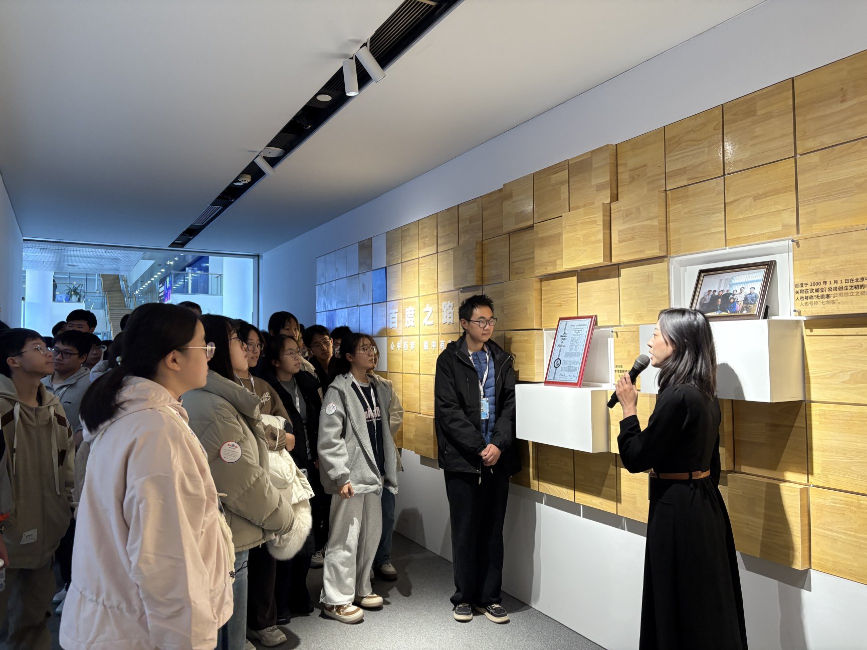 百度企业文化展厅不仅展示了百度在科技方面的成就,还呈现了百度的发展史、企业文化以及在公益、企业社会责任方面的努力。这些展示内容让参观者更全面地了解百度,感受其作为全球领先的人工智能公司的技术实力。信管本科留学生白花说:“百度的企业文化给我留下了深刻的印象。公司强调开放、合作与创新,鼓励员工提出新想法。在参观中,我了解到百度不仅注重技术的研发,也非常重视员工的个人成长和团队合作,这让我认识到一个成功的企业不仅需要先进的技术,更需要良好的企业文化作为支撑。”