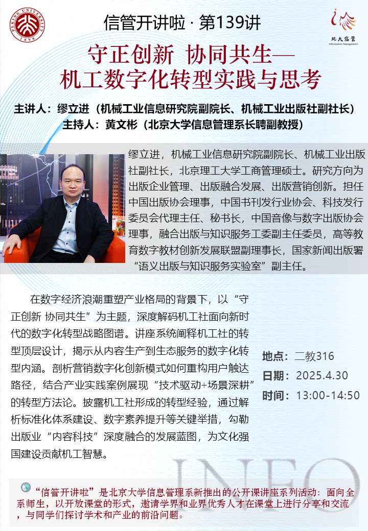 信管开讲啦·第139讲 | 守正创新 协同共生——机工数字化转型实践与思考