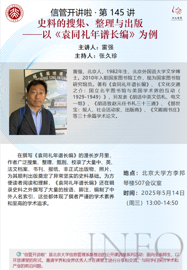 信管开讲啦·第145讲 | 史料的搜集、整理与出版——以《袁同礼年谱长编》为例