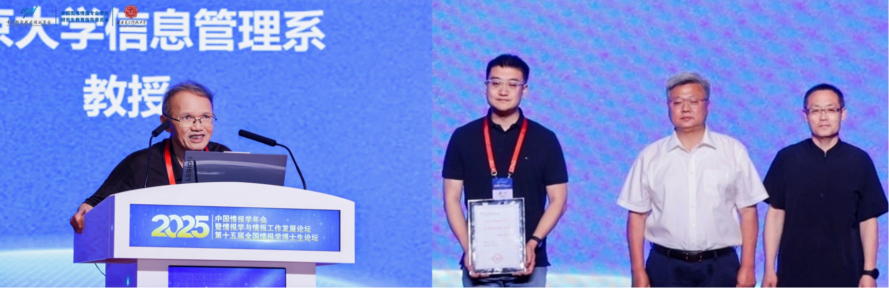 在情报学年会闭幕式中,赖茂生教授作为特邀嘉宾为获奖作者颁奖。经专家评审,2024级博士生仵轩的学术成果荣获“第十五届全国情报学博士生学术论坛优选论文一等奖”。信息管理系多名研究生的论文获得学术期刊的青睐与录用意向。